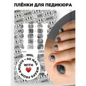 Пленки для педикюра от ТМ AMIGOS - быстрый дизайн и прочное покрытие. Включают 40 наклеек в 6ти размерах. Качественная тонкая пленка и четкий принт сделают педикюр неотразимыми. Для замеров ширины нотевой пластины-7 отрывных линеек, которые легко отделить и удобно использовать в работе. Ширина наклейки продублирована напротив каждого размера. Наклейка идеальна для ломких и тонких ногтей, т. к выступает дополнительным укреплением. Если сравнивать с другими покрытиями, пленка - менее аллергенна, т. к. не имеет в составе кислот и не соприкасается с кожей. Её можно применять на восстановленный протезированием ноготь. Можно использовать как на «голую» ногтевую пластину, так и под базу/укрепление гелем. Разнообразные дизайны - от однотона до фантазийных принтов не оставят клиентов равнодушными. Инструкция: 1. Подготовка НП: зашлифовать мягким бафом; обезжирить ногтевую пластину (не маслосодержащим веществом). Пленку можно устанавливать под укрепление базой/гелем, удалив липкий слой. 2. Подготовка пленок к использованию: снять защитную белую пленку с листа. 3. Установка. Определить размер пленки по ширине ногтя, используя линейку. Отделить пленку от подложки при помощи апельсиновой палочки, поддевая край. Закрепить пленку у основания ногтевой пластины (под кутикулу). Слегка натягивая, прижать по центру ногтевой пластины. Аккуратно пригладить складки от центра к краям до полного прилегания. Слегка натянуть и поджать пленку под свободный край. Спилить остатки от края к центру мягкой пилкой, не допуская складок. 4. Финишное закрепление. Покрыть пленку бескислотной базой, просушить в лампе. Покрыть топом, просушить в лампе. Возможно использование пленок без фиксации базой, используем бескислотный топ для сохранения рисунка. Финишное закрепление - не обязательно, но продлит носку. 5. Снятие. Снять финишное закрепление (фреза или размачивание). Смочить апельсиновую палочку в жидкости для снятия лака. Удалить пленку от краев к центру. Обязательно использование перчаток.