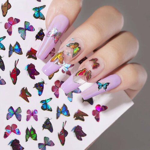 Голографические наклейки позволят сделать Ваш маникюр необычным и красивым. Это изображения на пленке, которые переносятся на ноготь. Их закрепляет прозрачный лак в конце маникюра.