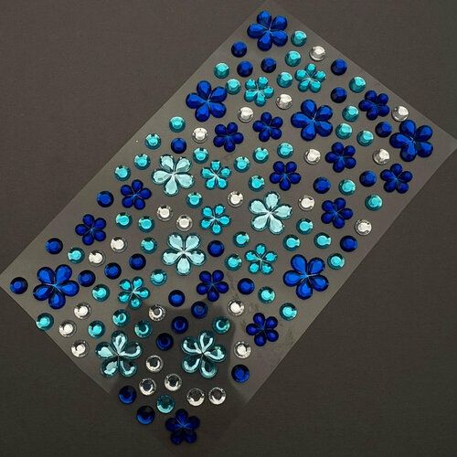 НАЙТИ ВЫГОДНЕЕ - Стразы на клеевой основе Zoo Nail Art микс с цветочками №1843 синие и голубые