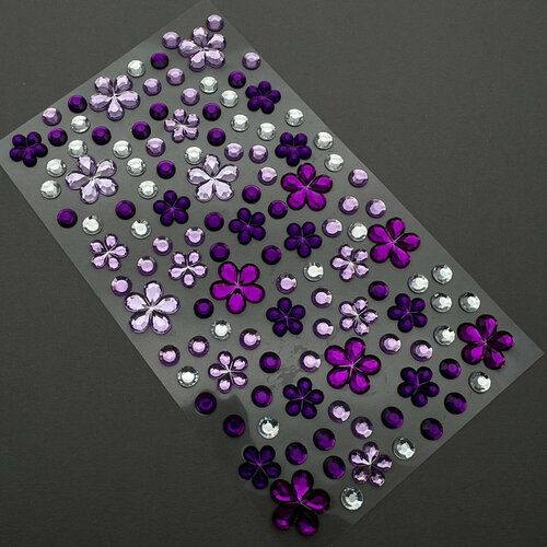 НАЙТИ ВЫГОДНЕЕ - Стразы на клеевой основе Zoo Nail Art микс с цветочками №1842 фиолетовые