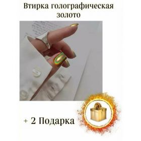 Втирка для ногтей голографическая золотая . Плотный, насыщенный пигмент супер мелкого помола, подходит для любого цвета гель лака, а так же как индивидуальный декор на ногти. Втирка для маникюра изготовлена из твердого пигмента, благодаря которому уменьшается расход втирки для ногтей. Втирка призма серебро обладает светоотражающий эффектом и нежным переливающим оттенком. Втирка призма для ногтей и голографическая втирка. Применение втирки для маникюра: Нанести топ без липкого слоя , поместить в лампу на 15-30 секунд в зависимости от мощности лампы. Аппликатором втереть втирку для маникюра, а остатки втирки для ногтей смахнуть щеткой с мягким ворсом. Забафить торцы ногтя. Смахнуть пыль. Покрыть топом без липкого слоя. Готово. Используйте для дизайна ногтей в паре с молочный гель, молочная база и белый гель лак или используйте прозрачный гель лак или матовый топ для гель лака.