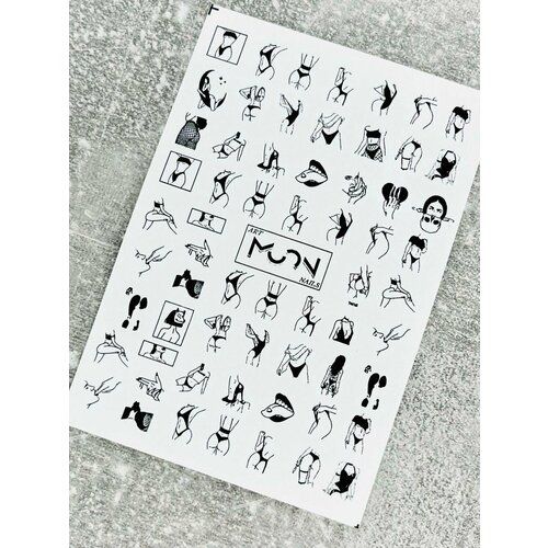 НАЙТИ ВЫГОДНЕЕ - Наклейки для ногтей. Слайдеры для ногтей водные. Ультратонкие, черно-белый цвет, 7x10 см