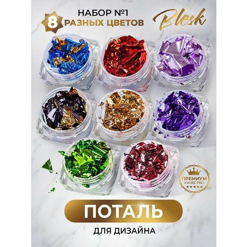 НАЙТИ ВЫГОДНЕЕ - Фольга для маникюра Blesk поталь №01, набор 8 разных цветов.