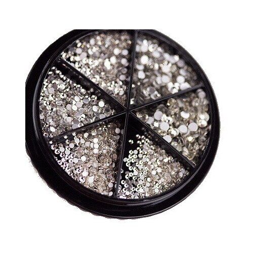 Микс белых сверкающих кристаллов разного диаметра для создания роскошного и изысканного маникюра. Имеют круглую форму и несколько граней, которые преломляют лучи света и создают эффект сияющих драгоценных камней. Поставляются в закручивающейся банке-карусели.