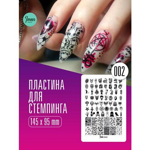 Представляем тебе "Имень пластину для стемпинга 002 Черепа" - идеальное решение для создания современного и изысканного дизайна. Продукт для профессионального использования. Эта пластина размером 145*95 мм является неотъемлемым инструментом в арсенале любого маникюрного мастера. Без пластиковой подложки, она обеспечивает максимальное удобство в использовании и позволяет воплотить любую твою идею в жизнь. Принты на пластине для стемпинга впечатляют своим разнообразием и оригинальностью. Ты легко сможешь создать неповторимый дизайн, будь то осенние мотивы, животные принты или новогодний праздник. Придай своим ногтям волшебство и радость с помощью пластины для стемпинга. Новогодний декор для маникюра, который придаст твоим ногтям неповторимый и стильный вид Перед использованием тщательно протереть пластину ацетонсодержащей жидкостью. 1. Нанести лак для стемпинга (гель-пасту или др.) 2. Скрапером снять излишки материала. 3. Перенести рисунок на подготовленный, очищенный штамп. 4. Перенести рисунок на ногтевую пластину.5. Очистить штамп.6. Очистить пластину ацетоном.7. Перекрывать рисунок нужно специальным топом для слайдеров. так же можно перекрыть топом с липким слоем, высушите в лампе, а затем топом без л/с.