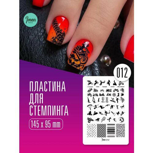 Представляем тебе "Имень пластину для стемпинга 012 Спорт" - идеальное решение для создания современного и изысканного дизайна. Продукт для профессионального использования. Эта пластина размером 145*95 мм является неотъемлемым инструментом в арсенале любого маникюрного мастера. Без пластиковой подложки, она обеспечивает максимальное удобство в использовании и позволяет воплотить любую твою идею в жизнь. Принты на пластине для стемпинга впечатляют своим разнообразием и оригинальностью. Ты легко сможешь создать неповторимый дизайн, будь то осенние мотивы, животные принты или новогодний праздник. Придай своим ногтям волшебство и радость с помощью пластины для стемпинга. Новогодний декор для маникюра, который придаст твоим ногтям неповторимый и стильный вид Перед использованием тщательно протереть пластину ацетонсодержащей жидкостью. 1. Нанести лак для стемпинга (гель-пасту или др.) 2. Скрапером снять излишки материала. 3. Перенести рисунок на подготовленный, очищенный штамп. 4. Перенести рисунок на ногтевую пластину.5. Очистить штамп.6. Очистить пластину ацетоном.7. Перекрывать рисунок нужно специальным топом для слайдеров. так же можно перекрыть топом с липким слоем, высушите в лампе, а затем топом без л/с.