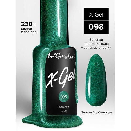 НАЙТИ ВЫГОДНЕЕ - In'Garden Гель-лак X-Gel, 8 мл, 50 г, №98 блестящий зеленый