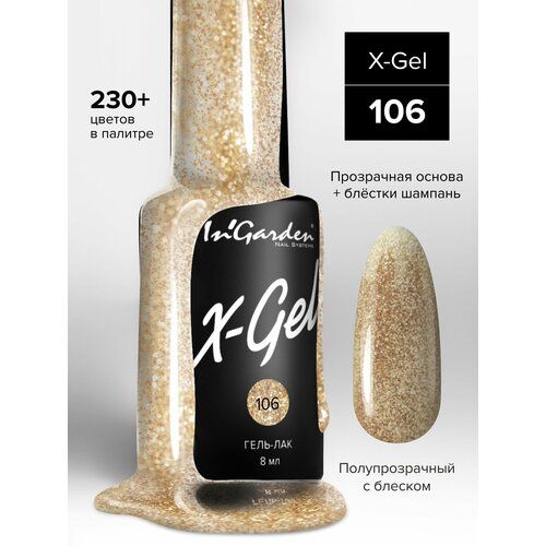 НАЙТИ ВЫГОДНЕЕ - In'Garden Гель-лак X-Gel, 8 мл, 50 г, №106 блестящий шампань
