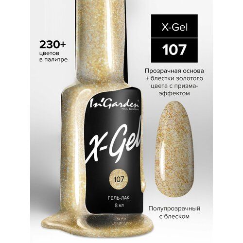 НАЙТИ ВЫГОДНЕЕ - In'Garden Гель-лак X-Gel, 8 мл, 50 г, №107 золотой голографический