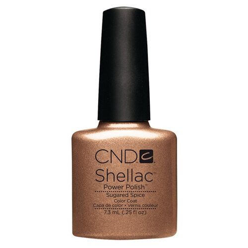 Медный оттенок с ослепительным золотистым шиммером и песочным отливом Sugared Spice, создающий на ногтях стойкое цветное покрытие CND Shellac.