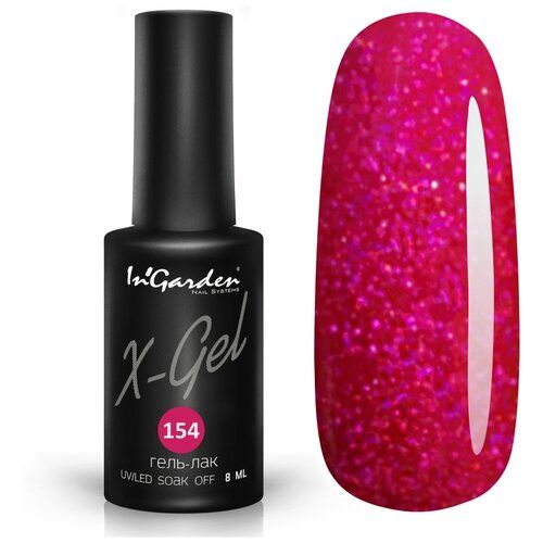 НАЙТИ ВЫГОДНЕЕ - In'Garden Гель-лак X-Gel, 8 мл, 50 г, №154 переливающийся загадочный оттенок фуксии