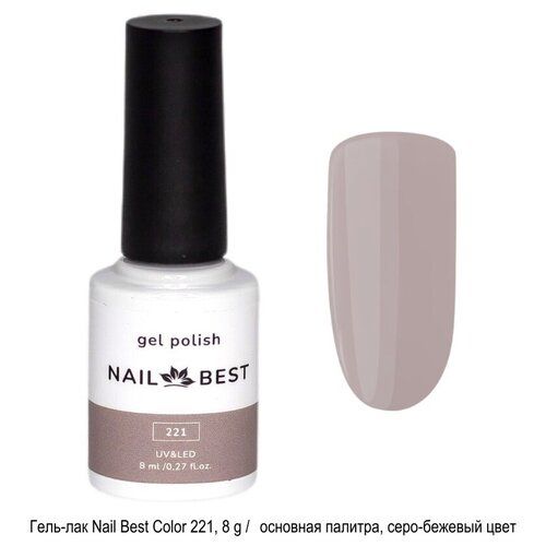 Гель-лак Nail Best Color 221 представляет собой серо-бежевый оттенок из основной палитры Nail Best. Объем флакона составляет 8 мл, что позволяет использовать его на протяжении длительного времени.