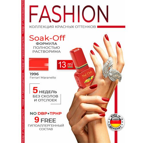 НАЙТИ ВЫГОДНЕЕ - Nail Club professional Эмалевый красный гель-лак для ногтей, цвет ярко-алый 1996 Ferrari Maranello, 13 мл.