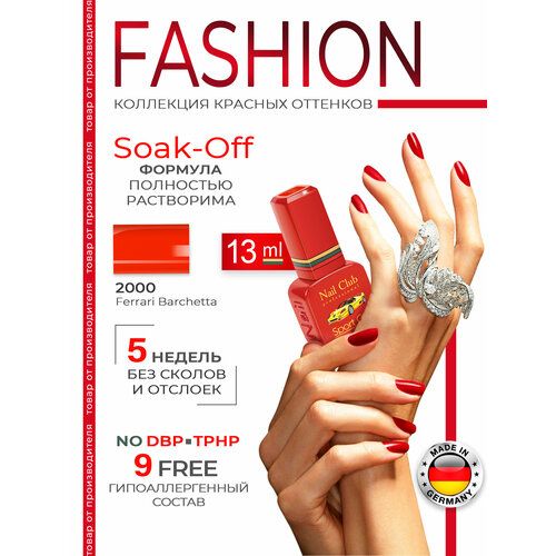НАЙТИ ВЫГОДНЕЕ - Nail Club professional Эмалевый красный гель-лак для ногтей, цвет классический алый 2000 Ferrari Barchetta, 13 мл.