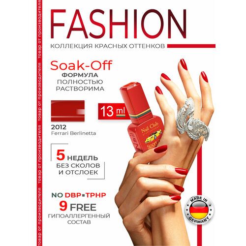 НАЙТИ ВЫГОДНЕЕ - Nail Club professional Эмалевый красный гель-лак для ногтей, цвет насыщенный красно-бордовый 2012 Ferrari Berlinetta, 13 мл.