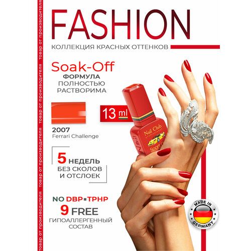 НАЙТИ ВЫГОДНЕЕ - Nail Club professional Эмалевый красный гель-лак для ногтей, цвет ярко-оранжевый 2007 Ferrari Challenge, 13 мл.