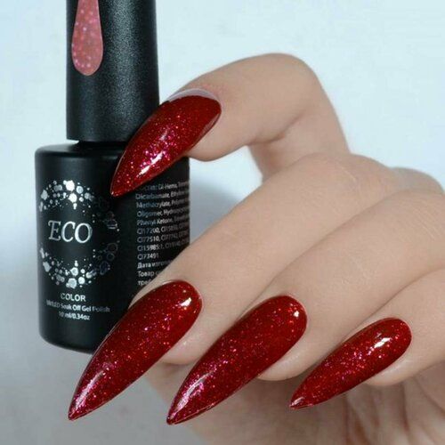 НАЙТИ ВЫГОДНЕЕ - Гель-лак для ногтей с блестками ТМ ECO №90, красный, 10мл