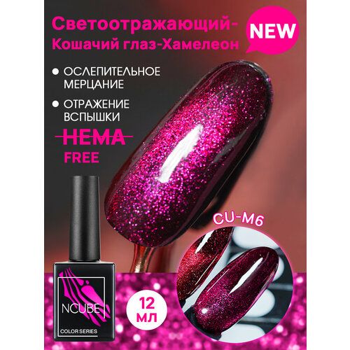 НАЙТИ ВЫГОДНЕЕ - NCUBE Гель-лак кошачий глаз хамелеон CU-M6,12 мл, HEMA FREE