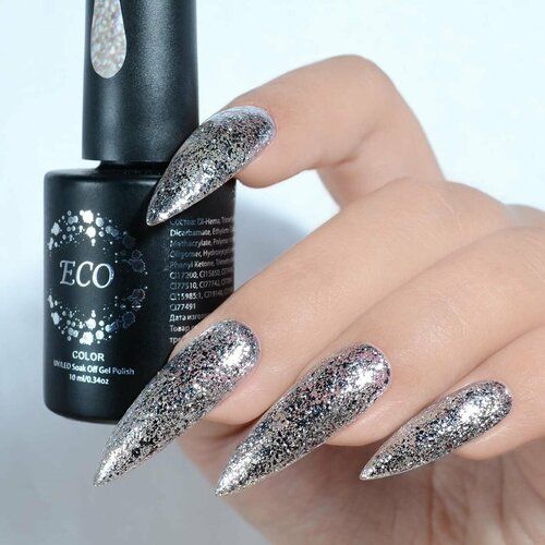 Представляем вашему вниманию фольгу для ногтей, которая станет незаменимым помощником в создании гламурного и стильного маникюра. Благодаря этому продукту, вы сможете быстро и легко создать уникальный дизайн ногтей, который подчеркнет вашу индивидуальность и привлечет внимание окружающих. Фольга для ногтей: гламурное покрытие. Трехфазный серебряный гель лак для ногтей с крупной и мелкодисперсной фольгой подходит для нанесения на натуральный ноготь при маникюре и педикюре, для покрытия искусственного материала и для создания всевозможных цветных дизайнов. Т. к. это трехфазная система, то для цветного покрытия необходимы будут также: база для гель-лака, глянцевый матовый топ для ногтей, праймер, бондер, дегидратор (при необходимости). Оптимальная консистенция и удобная форма кисточки позволяет легко и ровно нанести шеллак с блеском для маникюра, на ногтевую пластину. Профессиональный гипоаллергенный блестящий гель лак ECO может быть использован в салоне профессионалом или для покрытия ногтей гель-лаком в домашних условиях. Фольгированный гель лак с блёстками в виде крупной и мелкой фольги великолепно держится на ногтях, не выцветает и не дает сколов. Обращаем Ваше внимание на то, что это гель-лак. Для его полимеризации (сушки) потребуется УФ лампа или LED лампа для маникюра. Время полимеризации 60 - 120 секунд. Подробная инструкция по нанесению есть на фото в карточке товара. Убедительная просьба, проверять оттенок при получении, т. к. оттенок может немного отличаться от оттенка на вашем мониторе - это зависит от многих факторов. Фольгированный гель лак для ногтей: профессиональное качество. Фольга для ногтей сочетается с другими профессиональными продуктами для маникюра и педикюра, такими как база для ногтей, глянцевый топ, матовый топ для гель-лака, дизайн для ногтей, втирка для ногтей, акригель, полигель. Этот потрясающий шеллак с блестками придаст вашим ногтям роскошный и праздничный вид, который будет радовать вас и окружающих на протяжении долгого времени. Цветной гель лак: разнообразие оттенков. В ассортименте фольги для ногтей представлены разнообразные оттенки: красная фольга, зеленая фольга, золотая фольга, серебряная фольга, голубая фольга, что позволит вам выбрать наиболее подходящий цвет для вашего образа и настроения. Выбирая фольгу для ногтей, вы получаете не только стильный и яркий маникюр, но и возможность экспериментировать с различными оттенками и дизайнами, создавая каждый раз новый и неповторимый образ