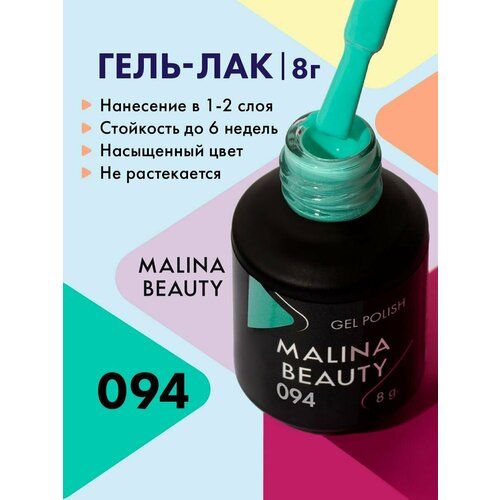 НАЙТИ ВЫГОДНЕЕ - Гель-лак 094 Светло-изумрудный MALINA BEAUTY 8 мл