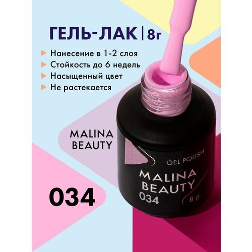 НАЙТИ ВЫГОДНЕЕ - Гель-лак 034 Лавандово-розовый MALINA BEAUTY 8 мл
