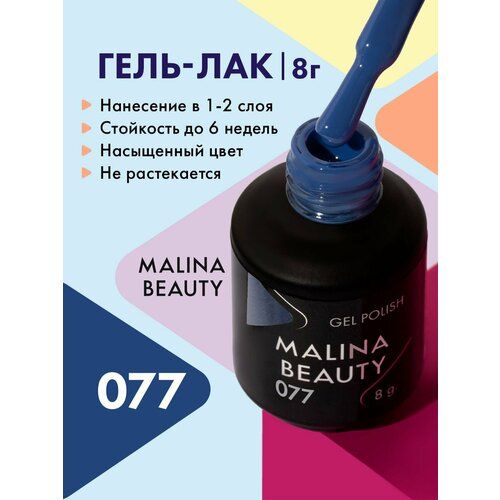 НАЙТИ ВЫГОДНЕЕ - Гель-лак 077 Серо-синий MALINA BEAUTY 8 мл