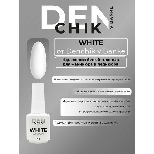 Цветной гель-лак для маникюра White Gel Color от Denchik_v_banke позволяет создавать плотное покрытие в один-два слоя, обладает свойством самовыравнивания, не допуская растекания на кутикулу и боковые валики. Высокое содержание пигмента передает всю насыщенность цвета на ноготь. Уникальная формула продукта дарит материалу повышенную стойкость к внешнему воздействию, что обеспечивает отсутствие каких-либо сколов и трещин на покрытии до 4 недель. Удобная кисть от флакона помогает сделать идеально ровные блики. Отлично подойдёт в качестве подложки наша каучуковая база Armstrong (артикул 94741335). Технология нанесения: 1. Подготовить ногтевую пластину. 2. Нанести базовое покрытие – поместить в лампу. LED – 1 мин./УФ – 2 мин. 3. Покрыть ноготь цветным гель-лаком – поместить в лампу. LED – 1 мин./УФ – 2 мин. 4. Нанести наш топ для гель лака Shockproof top (артикул 94741796), при необходимости удалить дисперсионный слой.