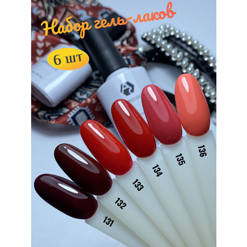 НАЙТИ ВЫГОДНЕЕ - Набор цветных гель-лаков 6 шт для маникюра Adricoco №131-136, шеллак красный, алый