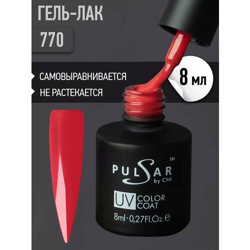 Оригинальная продукция бренда CNI. Мы производим уникальную, профессиональную косметику для nail индустрии с 1999 года. Авторские технологии, премиум качество и безопасность – наши главные преимущества. Pulsar by CNI – медиум линейка. Гель-лак P. GLC770-8 ультратонкое, плотное покрытие. Без утолщения ногтевой пластины. Наносится равномерно, не растекается и не затекает. Насыщенный высокопигментированный оттенок. Содержит светофильтры, защищающие от UV-лучей, предотвращая выцветание. Не меняет свой цвет на протяжении всей носки. Подходит для маникюра и педикюра. Полимеризуется в MIX, UV, LED лампах с временным промежутком 30/120/60 секунд. Если Вы используете лампу низкой мощности или со сниженным ресурсом, наносите более тонко и увеличивайте время полимеризации. Самовыравнивается и обладает легкой дисперсией, что позволяет последующим материалам создавать прочную сцепку между собой. Для равномерного нанесения достаточно одного или двух слоев. Стойкость покрытия до 4-х недель, которое не скалывается и не отслаивается. Эксперты компании создали идеальную мягкую, эластичную кисть с острым лазерным срезом и тонким ворсом, которая обеспечивает легкое и равномерное нанесение продукта максимально близко к кутикуле. Вы сможете осуществить профессиональную процедуру даже дома, без посещения салонов красоты. Перед применением необходимо удалить материал пилкой или при помощи аппарата. Пройтись бафом по ногтевой пластине, устранить опил, обработать обезжиривателем LC1. Далее нанести праймер LB1 (бондекс, бондер) и после его высыхания - приступайте к процедуре. Нанесите базу Pulsar P. UVB2 или P. UVB1. При необходимости допускается укрепление свободного края полигелем (акриловым гелем, акригелем). Цвет (шеллак) или дизайн наносится без удаления дисперсии в один или два тонких слоя. В завершении процедуры рекомендуем воспользоваться глянцевым топом со светофильтрами P. UVT1 или матовым топом P. UVT2. Это идеальный подарок не только для мастера, но и для любой женщины.