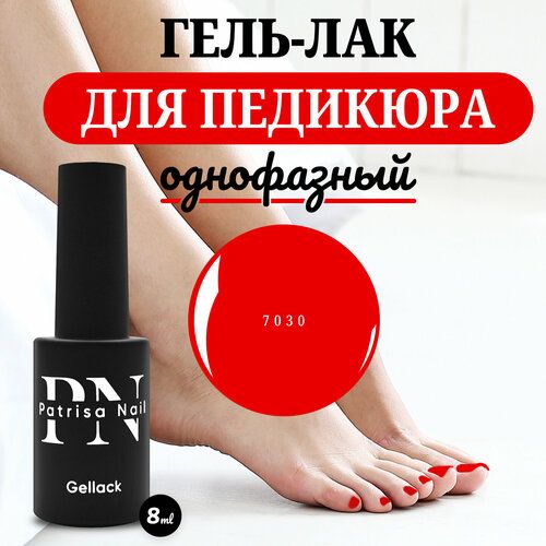 НАЙТИ ВЫГОДНЕЕ - Однофазный гель лак для педикюра и маникюра One Step №7030 от Patrisa Nail, неоново-яркий красный, 8 мл