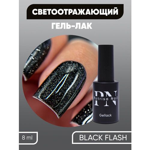 НАЙТИ ВЫГОДНЕЕ - Гель лак для ногтей с блестками светоотражающий Black Flash от Patrisa Nail, черный, 8 мл