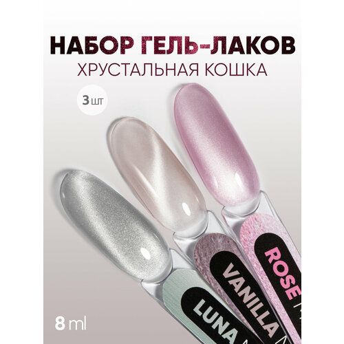 Набор гель-лаков для ногтей состоит их трех цветов: Magic Cat Vanilla, Rose и Luna. Розовый гель-лак оценят абсолютно все