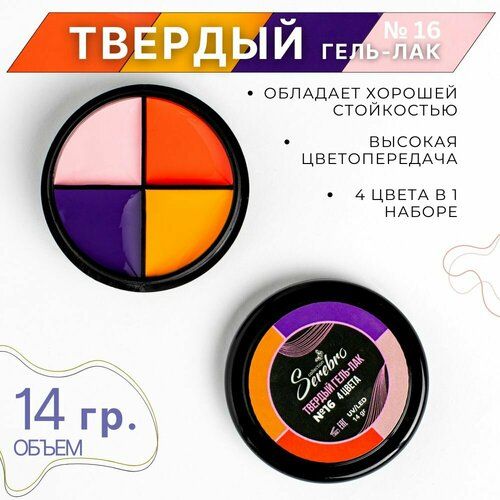 НАЙТИ ВЫГОДНЕЕ - Твердый гель-лак Serebro 4 цвета №16, глянцевый, стойкий, 14гр.