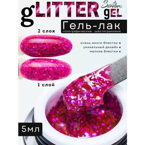 НАЙТИ ВЫГОДНЕЕ - Гель - лак для ногтей Serebro Glitter, фиолетовый, голографические шестигранники, 5 мл.