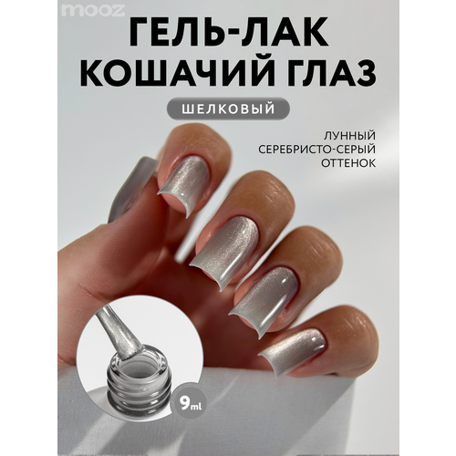 НАЙТИ ВЫГОДНЕЕ - Гель лак для ногтей Mooz №304 Money cat кошачий глаз с эффектом втирки, перламутровый лунный серебристо-серый, 9 мл