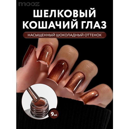 НАЙТИ ВЫГОДНЕЕ - Гель лак для ногтей Mooz №302 Choco cat кошачий глаз с эффектом втирки, перламутрово-коричневый, 9 мл