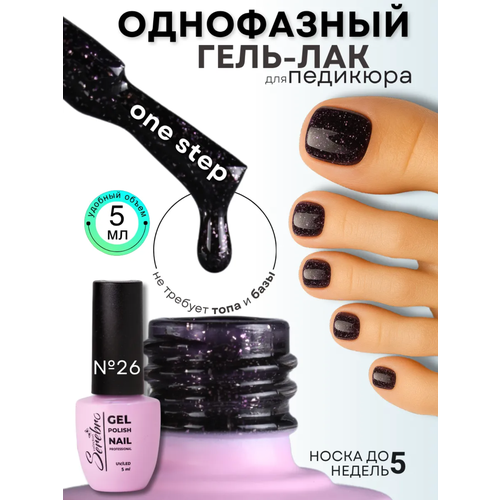 НАЙТИ ВЫГОДНЕЕ - Однофазный гель-лак темно-фиолетовый с серебряным шиммером Serebro для педикюра №26, 5 мл