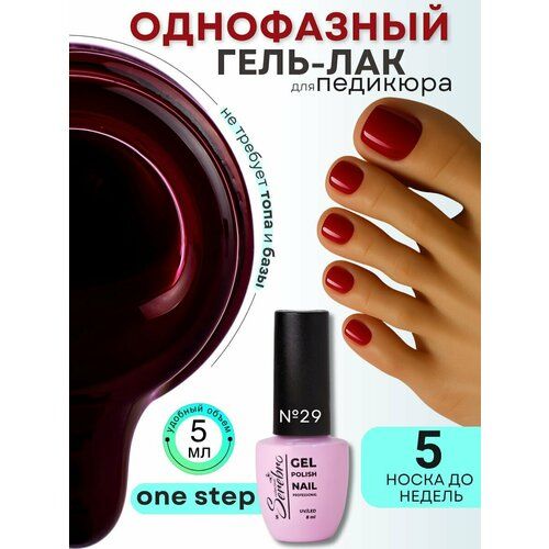НАЙТИ ВЫГОДНЕЕ - Однофазный гель-лак бордовый Serebro для педикюра №29, 5 мл