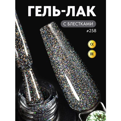 НАЙТИ ВЫГОДНЕЕ - Гель-лак для ногтей с блестками Cheers от Patrisa Nail, № 258 блестящий серый, 8 мл