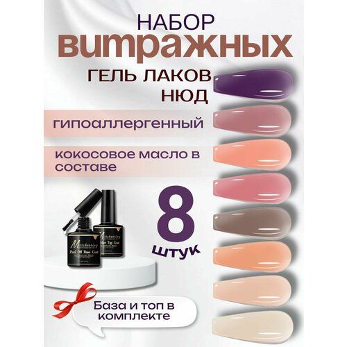 НАЙТИ ВЫГОДНЕЕ - Гель лаки для ногтей Витражный набор (нюд) / 8шт + база и топ / Misscheering