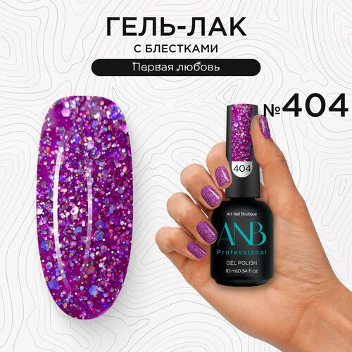 Гель-лак для ногтей с блестками №404 первая любовь имеет яркий, насыщенный глубокий, плотный цвет. Благодаря новой формуле он самовыравнивается и не полосит на ногтях. Гель-лак сильно пигментированный и имеет липкий слой. Наносится легкими движениями эргономичной и упругой кисточкой в два слоя и не имеет химического запаха. Невероятный эффект блеска, от шиммера с блёстками, создадут потрясающий дизайн на ваших ногтях. Подходит для французского маникюра, френча или нежного и дерзкого маникюра и педикюра. В коллекции от АНБ есть темные и светлые оттенки, нюдовые, молочные и витражные цвета, несколько оттенков красного и розового, синего и серых, а также коричневых кракелюр и других цветных гель лаков. С нашей палитрой цветов легко можно сделать летний, осенний, зимний и весенний дизайн. Как только Вы остановите свой выбор на определенном цвете, вы всегда можете его дополнить светоотражающими блестками, стразами или хлопьями юки. Все цвета обладают стойкостью до 6 недель. Гель лаки представлены в объеме 10мл. В комплекте к каждому лаку идет наклейка на типсу Внимание Перед нанесением, флакон гель лака необходимо хорошо перемешать в ладонях, и наносить в 2 тонких слоя. Технология нанесения. Нанести гель-лак на подготовленную ногтевую пластину, поверх базового покрытия (основы) в 1-2 слоя. Каждый слой просушить в LED лампе 60 секунд. Закрепить топом для ногтей. Материалы от ANB сочетаются практически с любыми материалами других брендов (база, топ, полигель и акригель, праймер, пудра) и подходят как для профессионального, так и домашнего использования. В качестве подложки подходит любая каучуковая база для маникюра и педикюра. Закрепить маникюр так же можно любым топом для ногтей, наша палитра отлично смотрится как с глянцевым, так и матовым топом. Если же вам необходимо украсить ваш дизайн поталью или стразами, тогда рекомендуем использовать наш топ с липким слоем.