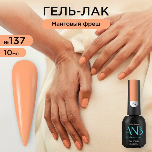 Однотонный гель-лак для ногтей №137 манговый фреш имеет насыщенный глубокий, плотный цвет. Благодаря новой формуле он самовыравнивается и не полосит на ногтях. Сильно пигментированный и имеет липкий слой. Наносится легкими движениями эргономичной и упругой кисточкой в два слоя и не имеет химического запаха. Подходит для френча и любого другого нежного и дерзкого дизайна для маникюра и педикюра. С помощью палитры ANB Professional ваш маникюр будет стильным и элегантным. В коллекции от АНБ есть темные и светлые оттенки, нюдовые и витражные цвета, несколько оттенков красного, синего и других цветных гель лаков. С нашей палитрой цветов легко можно сделать летний, осенний, зимний и весенний дизайн. Все цвета обладают стойкостью до 6 недель. Гель лаки представлены в объеме 5мл и 10мл. В комплекте к каждому лаку идет наклейка на типсу