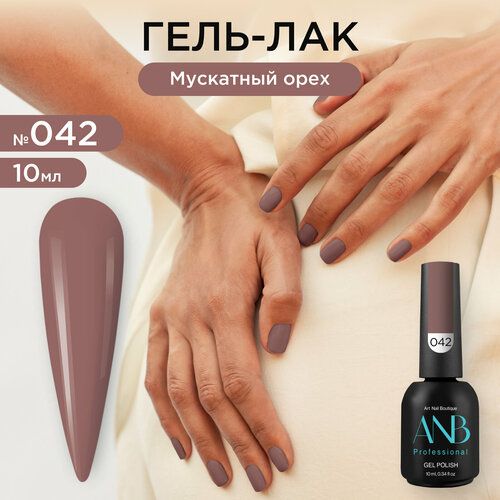 Однотонный гель-лак для ногтей № 042 мускатный орех имеет насыщенный глубокий, плотный цвет. Благодаря новой формуле он самовыравнивается и не полосит на ногтях. Сильно пигментированный и имеет липкий слой. Наносится легкими движениями эргономичной и упругой кисточкой в два слоя и не имеет химического запаха. Подходит для френча и любого другого нежного и дерзкого дизайна для маникюра и педикюра. С помощью палитры ANB Professional ваш маникюр будет стильным и элегантным. В коллекции от АНБ есть темные и светлые оттенки, нюдовые и витражные цвета, несколько оттенков красного, синего и других цветных гель лаков. С нашей палитрой цветов легко можно сделать летний, осенний, зимний и весенний дизайн. Все цвета обладают стойкостью до 6 недель. Гель лаки представлены в объеме 5мл и 10мл. В комплекте к каждому лаку идет наклейка на типсу