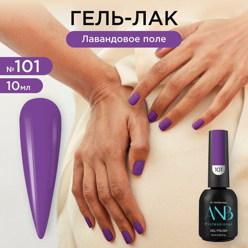 Однотонный гель-лак для ногтей №101 лавандовое поле имеет насыщенный глубокий, плотный цвет. Благодаря новой формуле он самовыравнивается и не полосит на ногтях. Сильно пигментированный и имеет липкий слой. Наносится легкими движениями эргономичной и упругой кисточкой в два слоя и не имеет химического запаха. Подходит для френча и любого другого нежного и дерзкого дизайна для маникюра и педикюра. С помощью палитры ANB Professional ваш маникюр будет стильным и элегантным. В коллекции от АНБ есть темные индиго, indigo светлые и кремовые оттенки, нюдовые и витражные цвета, несколько оттенков красного, синего и других цветных гель лаков. С нашей палитрой цветов легко можно сделать летний, осенний, зимний и весенний дизайн. Все цвета обладают стойкостью до 6 недель. Гель лаки представлены в объеме 5мл и 10мл. В комплекте к каждому лаку идет наклейка на типсу