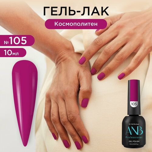 Однотонный гель-лак для ногтей №105 космополитен имеет насыщенный глубокий, плотный цвет. Благодаря новой формуле он самовыравнивается и не полосит на ногтях. Сильно пигментированный и имеет липкий слой. Наносится легкими движениями эргономичной и упругой кисточкой в два слоя и не имеет химического запаха. Подходит для френча и любого другого нежного и дерзкого дизайна для маникюра и педикюра. С помощью палитры ANB Professional ваш маникюр будет стильным и элегантным. В коллекции от АНБ есть темные и светлые оттенки, нюдовые и витражные цвета, несколько оттенков красного, синего и других цветных гель лаков. С нашей палитрой цветов легко можно сделать летний, осенний, зимний и весенний дизайн. Все цвета обладают стойкостью до 6 недель. Гель лаки представлены в объеме 5мл и 10мл. В комплекте к каждому лаку идет наклейка на типсу