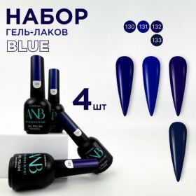 Профессиональный однотонный набор синих гель-лаков для ногтей BLUE включает в себя 4шт ярких оттенков по 10мл (130, 131, 132, 133). Имеют насыщенный глубокий, плотный цвет. Благодаря новой формуле они самовыравниваются и не полосят на ногтях. Сильно пигментированные и имеют липкий слой. Гель лак наносится легкими движениями эргономичной и упругой кисточкой в два слоя и не имеет химического запаха. Подходит для нежного фреча (французский) и дерзкого дизайна для маникюра и педикюра. С помощью палитры ANB Professional ваш маник будет стильным и элегантным. В коллекции от АНБ есть темные и светлые оттенки, натуральные нюдовые и витражные цвета, красный, фуксия, синий, розовый и бородовый, молочный и другие оттенки. С нашей палитрой цветов легко можно сделать летний, осенний, зимний и весенний дизайн. Все цвета обладают стойкостью до 6 недель. Гель лаки представлены в объеме 10мл. В комплекте к каждому лаку идет наклейка на типсу.