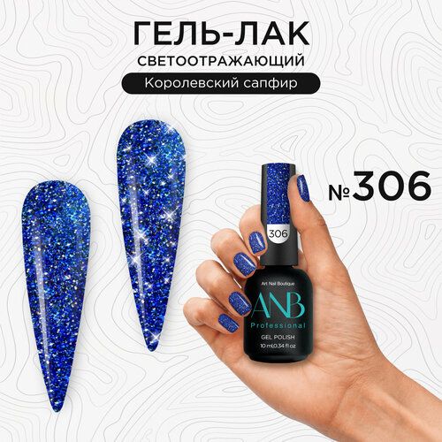 Светоотражающий гель-лак для ногтей №306 королевский сапфир имеет яркий, насыщенный глубокий, плотный цвет. Благодаря новой формуле он самовыравнивается, обладает высокой стойкостью и не полосит на ногтях. Гель лак со светоотражающим эффектом сильно пигментированный и имеет липкий слой. Наносится легкими движениями эргономичной кисточкой в два слоя. Невероятный эффект блеска, шиммер и металлический оттенок создадут потрясающий дизайн на ваших ногтях. Подходит для французского маникюра, френча или нежного и дерзкого сияющего дизайна. В коллекции от АНБ есть темные и светлые оттенки, нюдовые, молочные и витражные цвета, несколько оттенков красного и розового, синего и серых, а также коричневых кракелюр и других цветных гель лаков. Для классического маникюра рекомендуем выбрать наш белый цвет, а для панк стиля ультрачерный цвет или яркую фуксию. С нашей палитрой цветов легко можно сделать летний, осенний, зимний и весенний маникюр. Все цвета обладают стойкостью до 6 недель. Как только Вы остановите свой выбор на определенном цвете, вы всегда можете его дополнить светоотражающими блестками, стразами или хлопьями юки. В комплекте к каждому лаку идет наклейка на типсу