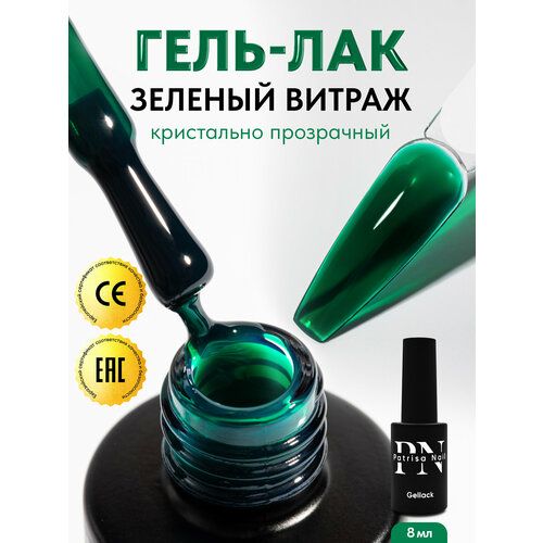 НАЙТИ ВЫГОДНЕЕ - Витражный зеленый гель-лак для ногтей Glass Emerald от Patrisa Nail, 8 мл