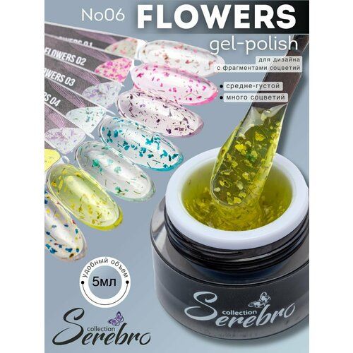 НАЙТИ ВЫГОДНЕЕ - Гель-лак для ногтей Serebro Flowers № 06, с сухоцветами, 5мл.