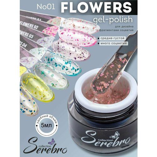 НАЙТИ ВЫГОДНЕЕ - Гель-лак для ногтей Serebro Flowers № 01, с сухоцветами, 5мл.